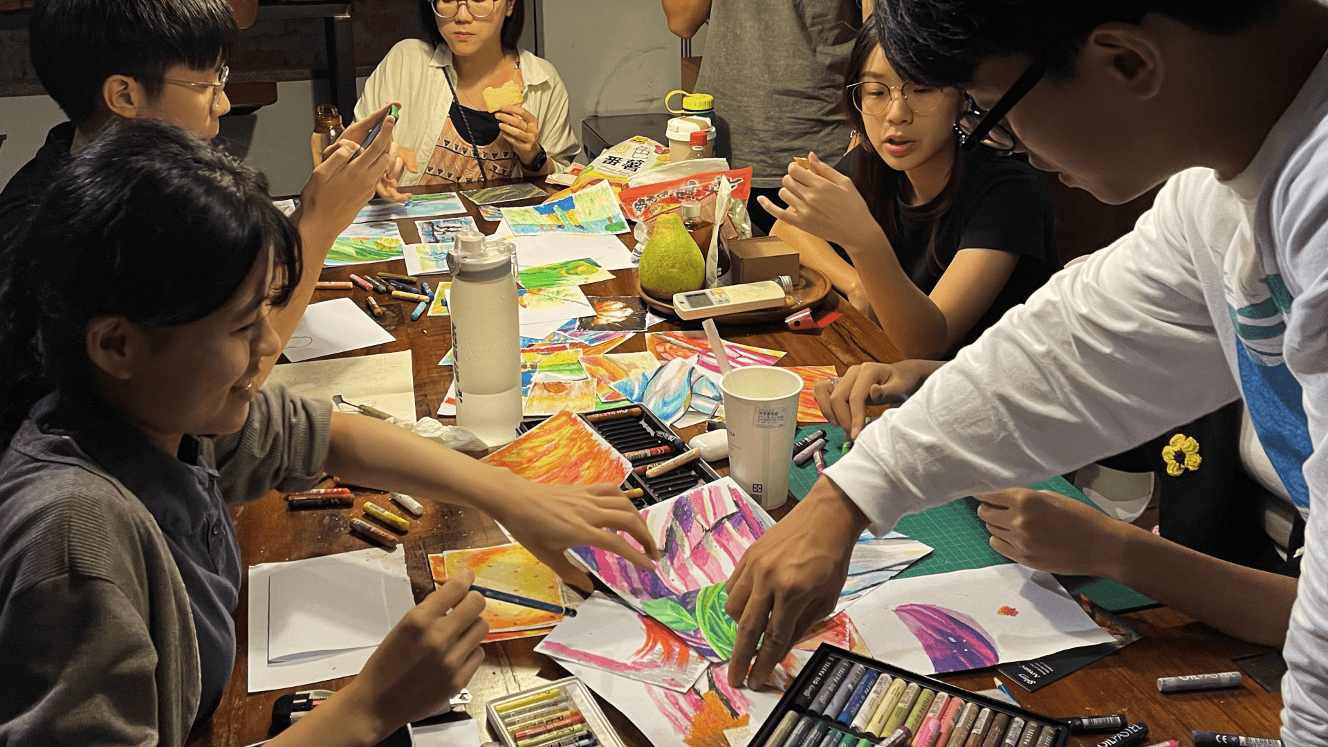 Acrylics, Oil pastel, Pastel, Charcoal, Crayon