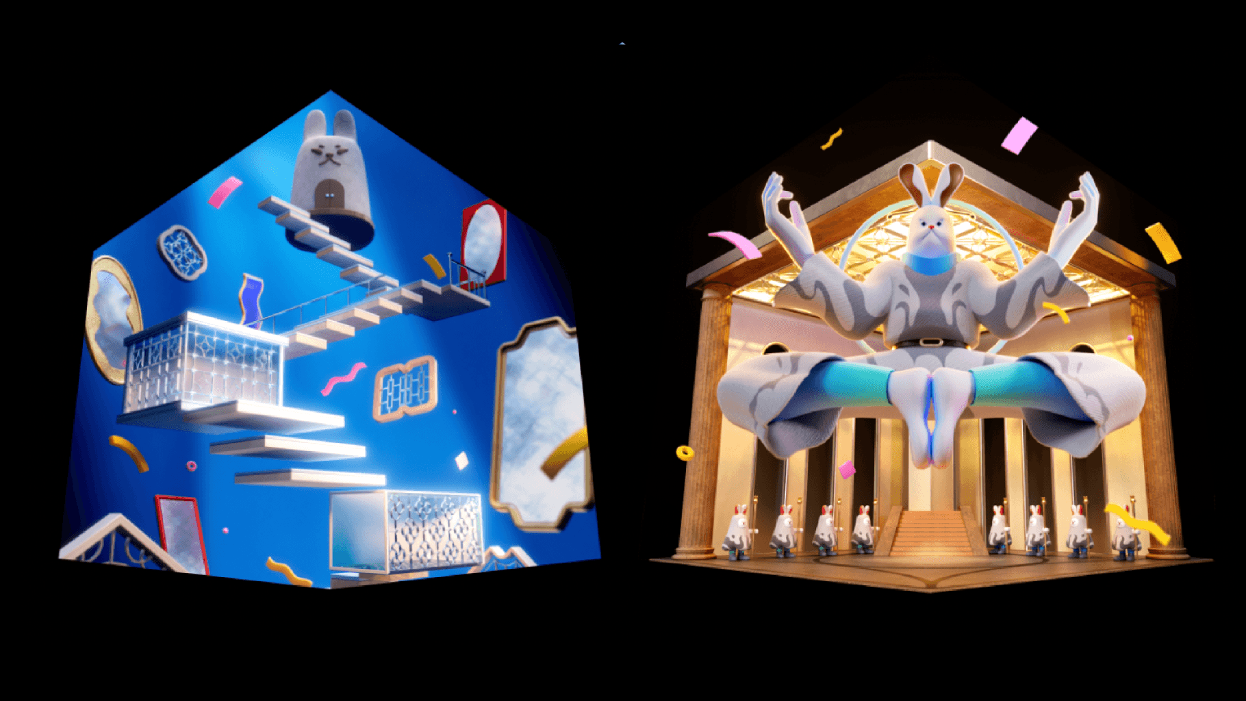 Over the past decade, Taiwan's Lantern Festival has evolved from a traditional celebration to a showcase for technology and artistic innovation. In recent years, artists and studios have leveraged new technologies to create stunning lantern displays, culminating in city-wide art festivals that attract visitors from around the world. With the goal to create an innovative and mesmerizing interactive installation, we started by taking the joy of receiving a package and turning it into an immersive experience featuring a narrative-driven storyline. Audiences engaged directly with 3D billboards, revealing hidden treasures in packages through discrete sensors. In the film's climax,the bunny courier delivered the package right to the audience on the top of the screens. Crafted for an intimate encounter, this ground-level piece provided a fully immersive experience, seamlessly integrating audiences into the narrative while transforming 3D billboards into a responsive sculpture. By combining three-storey high screens, lights, lasers, projections, real-time interaction, the physical bunny, and captivating music, the location was transformed into a unique architectural wonderland, fostering a collective experience.